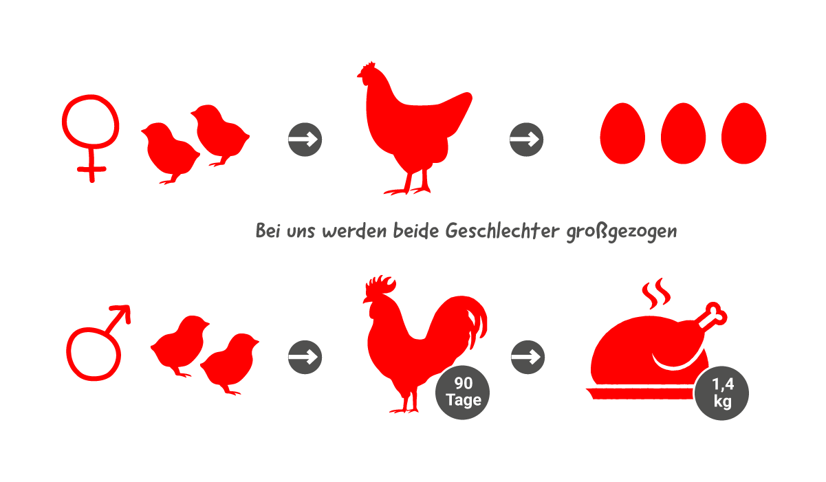 Achten Sie beim Kauf also auf einen entsprechenden Hinweis zu den männlichen Küken: Nur wenn explizit eine Früherkennung oder die Aufzucht der männlichen Küken garantiert werden, können sie sich darauf verlassen, dass die männlichen Küken nicht bereits wenige Stunden nach dem Schlupf getötet wurden. Beide Verfahren sind teuer und werden entsprechend beworben. Werden die männlichen Küken auf der Eierschachtel nicht thematisiert, müssen Sie davon ausgehen, dass die Legehennen aus dem Ausland bezogen wurden. Weitere Informationen gibt´s auf Huhn-Hahn.de