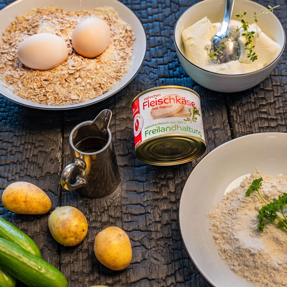 2 Konserven Huhn&Hahn-Fleischkäse